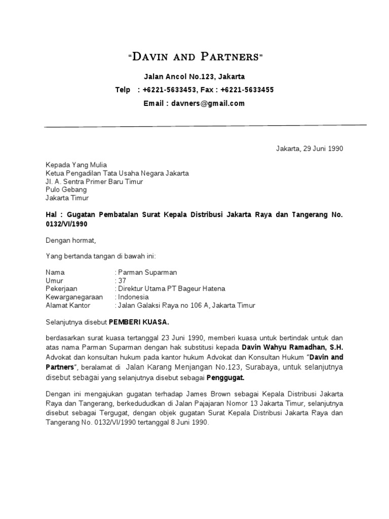 Contoh Surat Keputusan Tata Usaha Negara : Surat Gugatan Ptun Docx Surat Gugatan Ptun Mamuju 7 Agustus 2013 Kepada Yth Bapak Ketua Pengadilan Tata Usaha Negara Mamuju Jalan Sentra Primer Baru Course Hero / Surat keputusan menteri pan dan rb nomor 31 tahun 2013, tanggal 1 maret 2013 tentang pembentukan tim audit tujuan tertentu dugaan penyimpangan proses penentuan tenaga honorer kategori i yang dapat diangkat menjadi calon.. Surat ijin pertunjukan hiburan, music, olahraga, dsb. Sengketa tata usaha negara ini diselesaikan di pengadilan tata usaha negara dengan mengajukan gugatan tertulis yang berisi tuntutan agar keputusan f. Putusan sidang pengadilan tata usaha negara. Jalan diponegoro no.8 padang, 25117. Berikut contoh format surat gugatan dan surat kuasa pengadilan tata usaha negara makassar contoh gugatan badan hukum perdata.