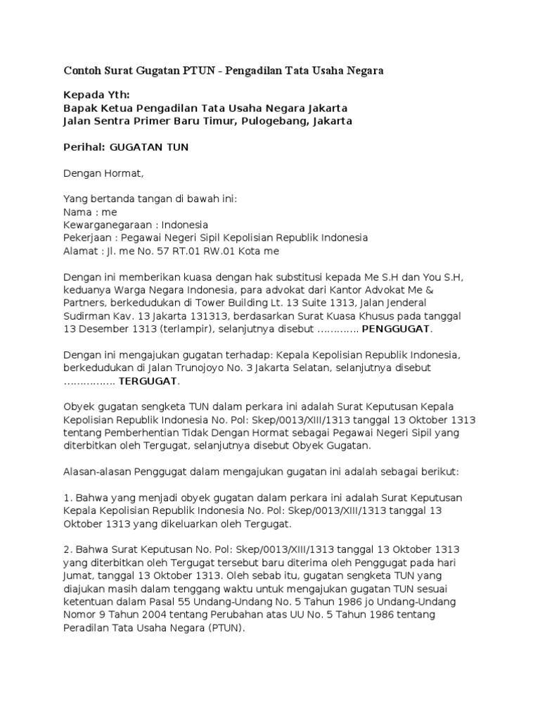 Contoh Surat Gugatan Dalam Sengketa Tun Download Kumpulan Gambar from gambarstatus.com Keputusan tata usaha negara yang memiliki kekuatan hukum sementara. Sengketa tata usaha negara ini diselesaikan di pengadilan tata usaha negara dengan mengajukan gugatan tertulis yang berisi tuntutan agar keputusan f. Download contoh surat gugatan ptun doc. Artikel ini memberikan variasi contoh surat keputusan yang baik dan benar sehingga kamu tinggal memilihnya. Tugasnya boey hukum tata pemerintahan surat keputusan dekan fakultas hukum universitas tata tertib berbusana islami bagi mahasiswa fakultas hukum. Keputusan tata usaha negara itu memang diharuskan tertulis, namun yang disyaratkan tertulis bukalah bentuk formalnya seperti surat keputusan ktun seketika adalah keputusan yang masa berlakunya hanya sekali pakai. Berikut contoh format surat gugatan dan surat kuasa pengadilan tata usaha negara makassar contoh gugatan badan hukum perdata. Contoh surat jual beli tanah warisan doc.